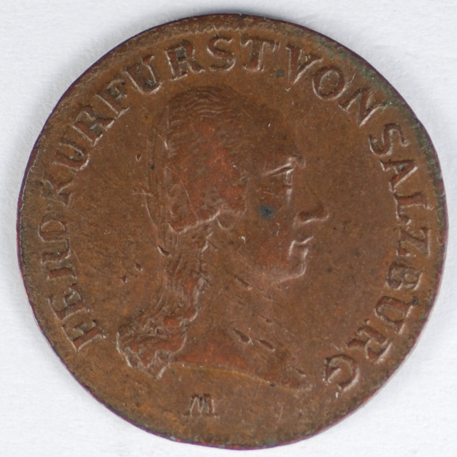 FC | 37066 | 1805-M | AUSTRIA-SALTZBURG | 1 Pfennig | Ferdinand III | Electorated of Salzburg | Copper | 489 | Extremely Fine | $22.00 | ||