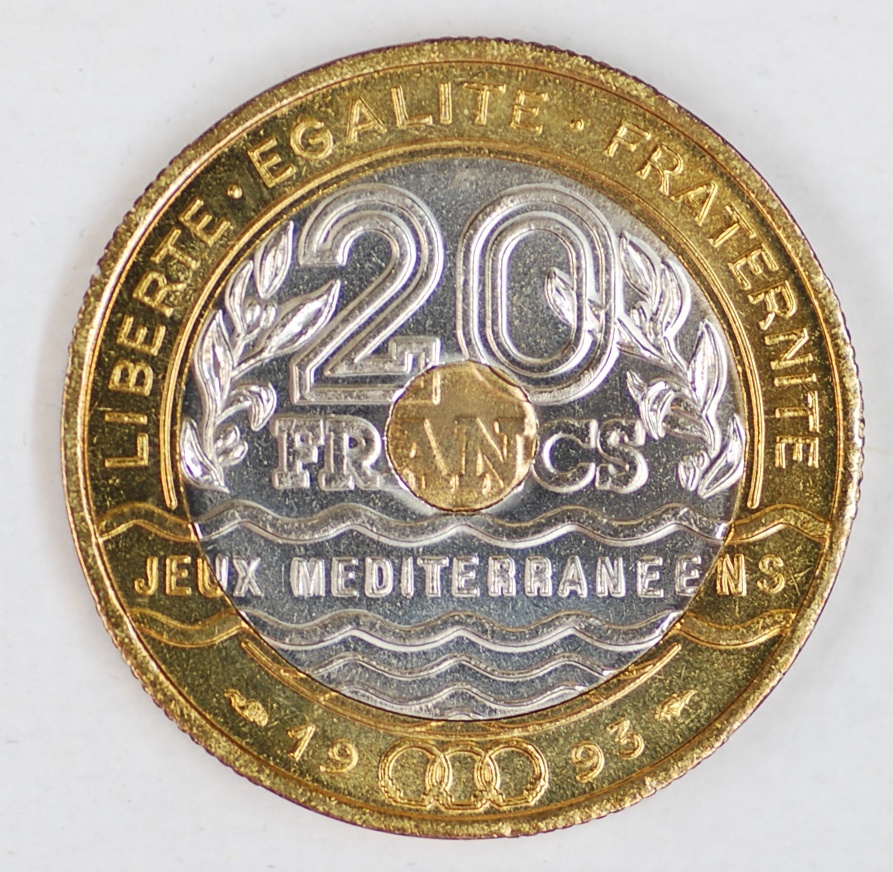 | FC | 28874 | 1993 | FRANCE | 20 Francs | Mediterranean Games | Tri-Metallic | 1016 | Uncirculated | $10.00 | ||||||