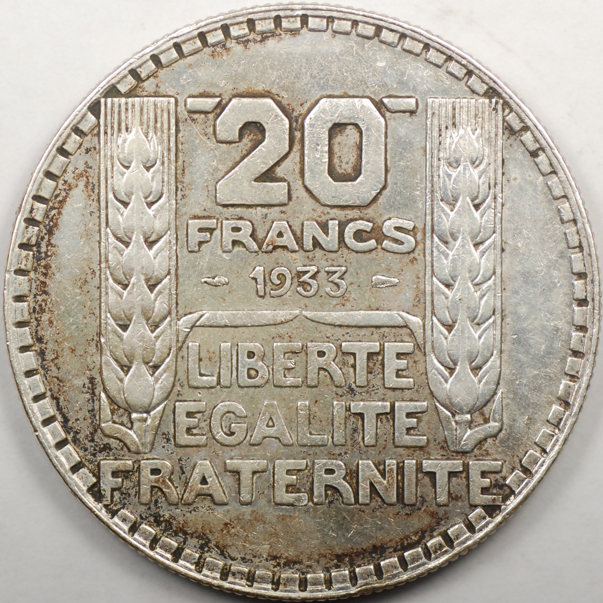 | FC | 16948 | 1933 | FRANCE | 20 Francs | Laureate Head Right | 0.680 | 0.4372 | Silver | 879 | Extremely Fine | $12.00 | ||||