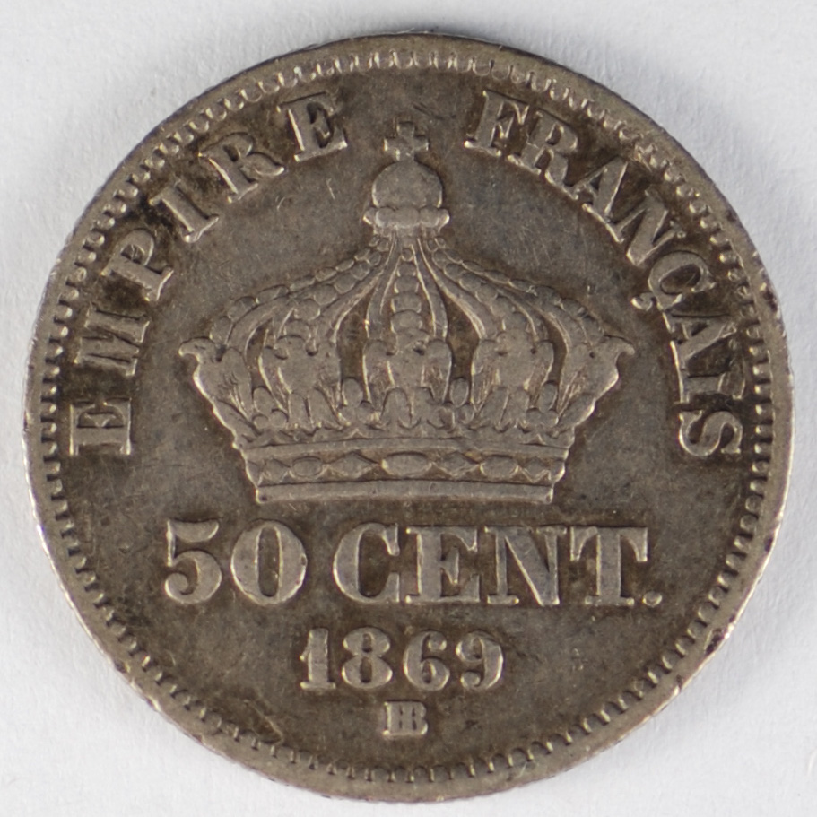 | FC | 20356 | 1868-BB | FRANCE | 50 Centimes | Napoleon III | 0.835 | 0.0671 | Silver | 814.2 | Very Fine | $110.00 | |||