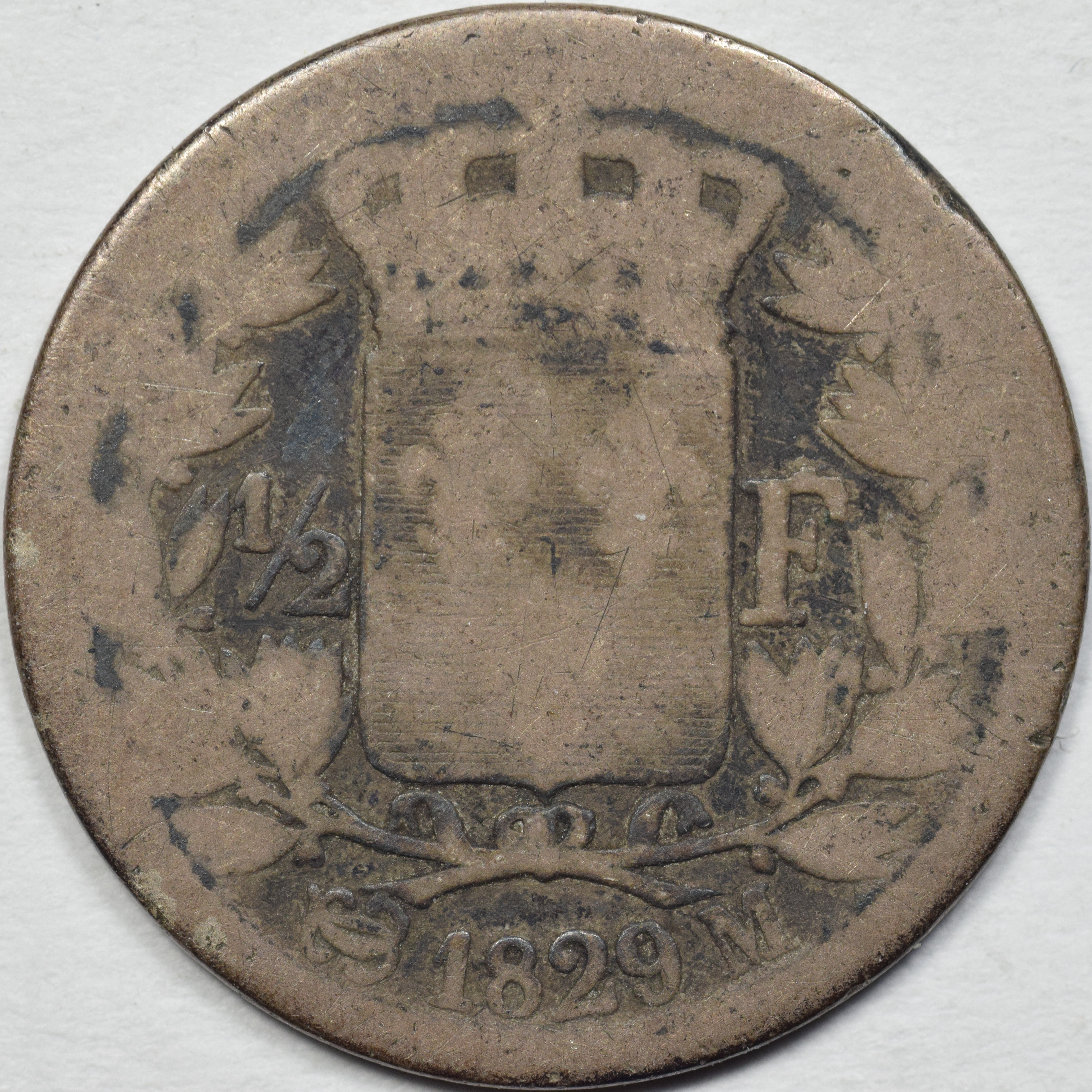 | FC | 33572 | 1829-M | FRANCE | 1/2 Franc | Crowned Arms | Head Left | 0.900 | 0.0723 | Silver | 723.9 | Good | $10.00 | |||