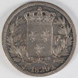 | FC | 37462 | 1829-A | FRANCE | 1/2 Franc | Charles X | 0.900 | 0.0723 | Silver | 723.1 | Extremely Fine | $75.00 | ||||