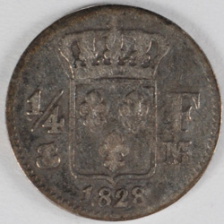 | FC | 37458 | 1828-M | FRANCE | 1/4 Franc | Charles X | 0.900 | 0.0362 | Silver | 722.9 | Extremely Fine | $65.00 | ||||
