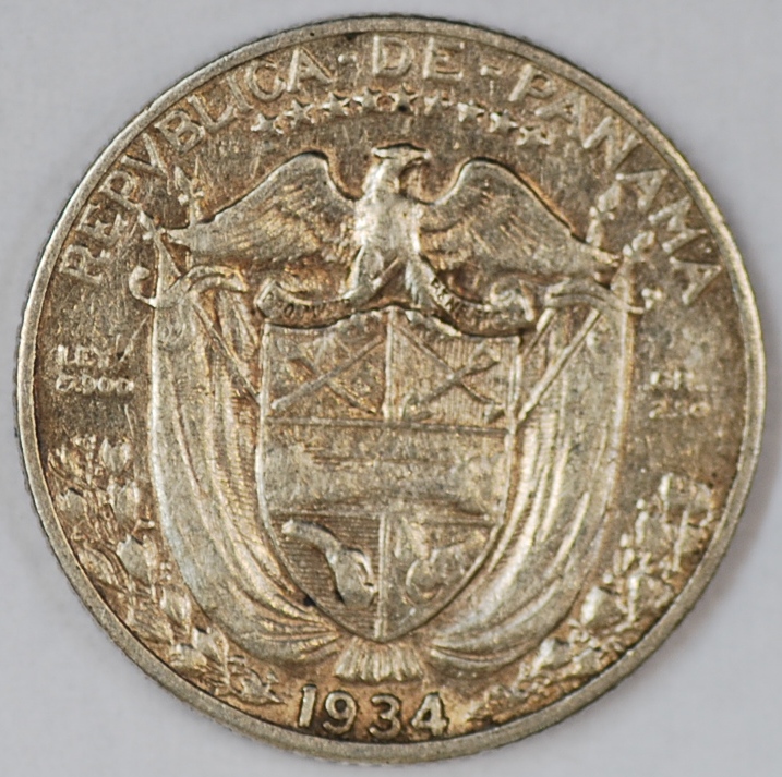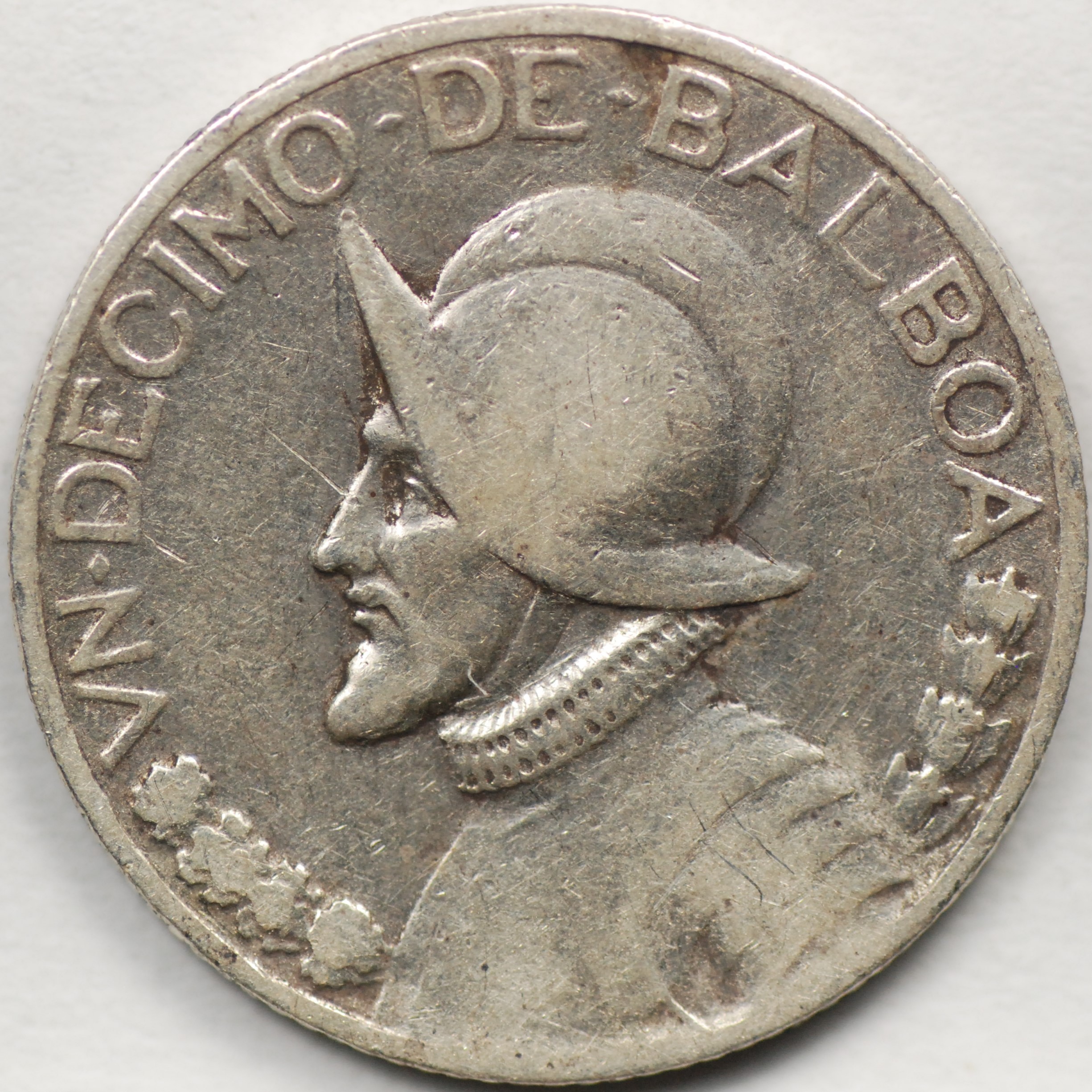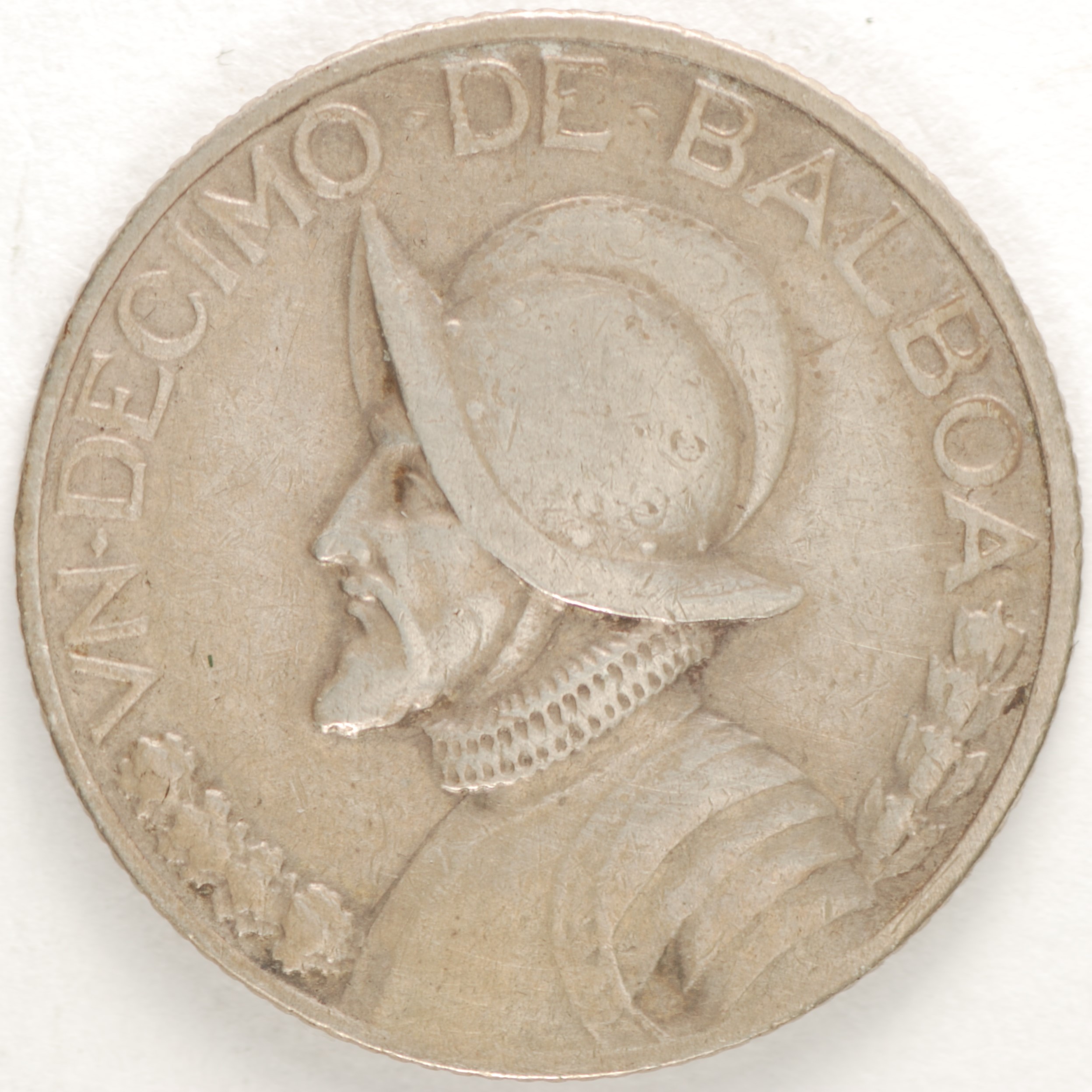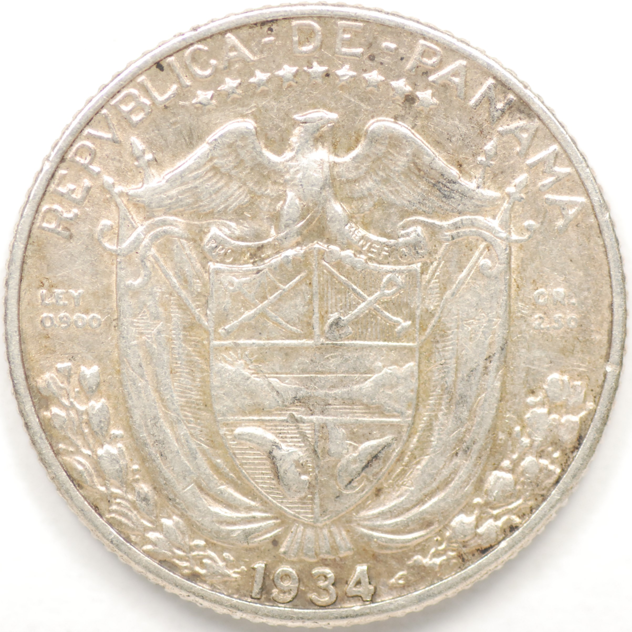 FC | 38850 | 1934 | PANAMA | 1/10 Balboa | National Arms | 0.900 | 0.0723 | Silver | 10.1 | Extremely Fine | $95.00 | |