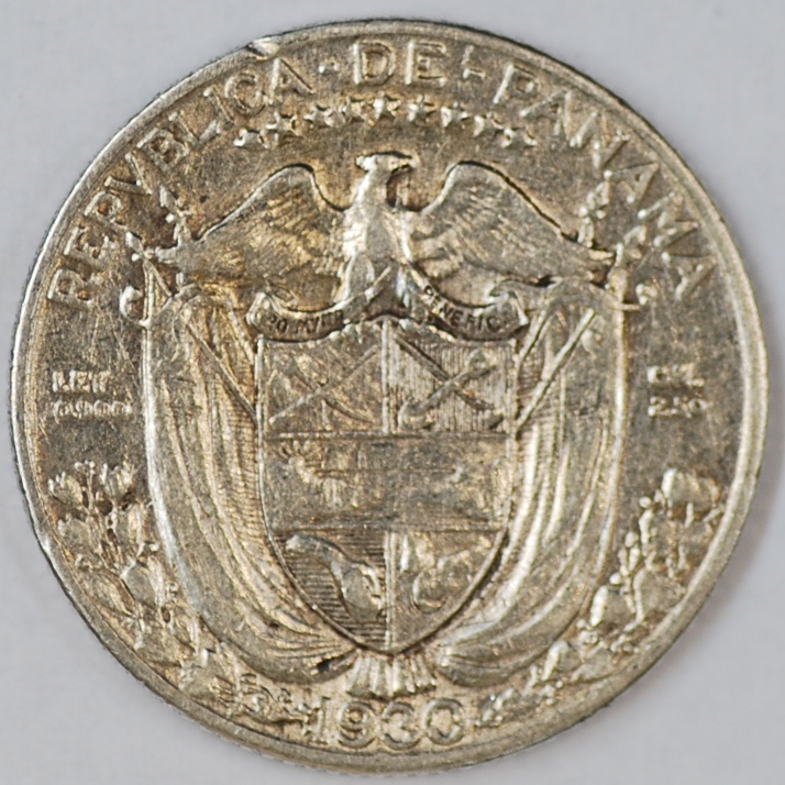 FC | 22804 | 1930 | PANAMA | 1/10 Balboa | National Arms | 0.900 | 0.0723 | Silver | 10.1 | Extremely Fine | $15.00 | |