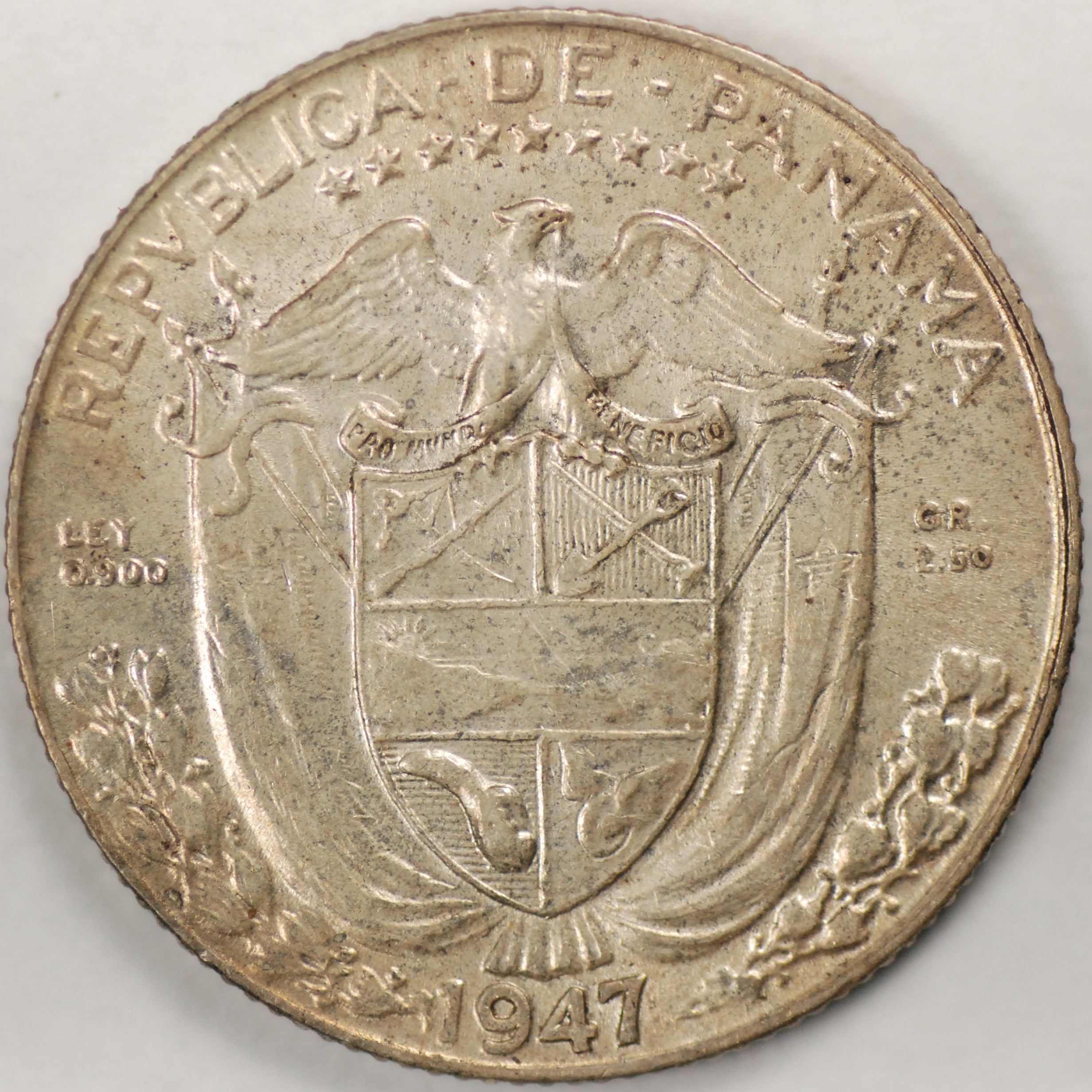 | FC | 14585 | 1947 | PANAMA | 1/10 Balboa | National Arms | 0.900 | 0.0723 | Silver | 10.1 | Extremely Fine | $10.00 | |||
