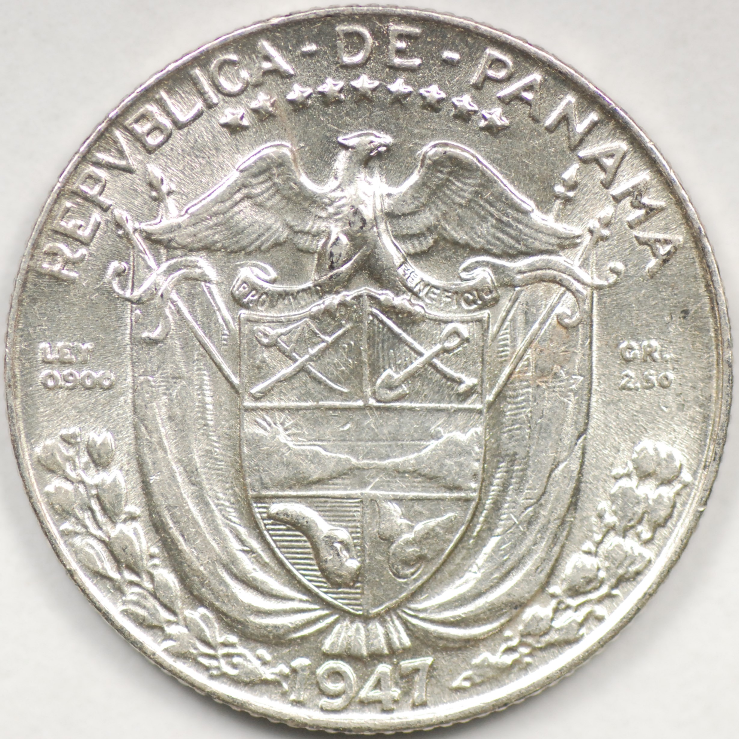 | FC | 20648 | 1947 | PANAMA | 1/10 Balboa | National Arms | 0.900 | 0.0723 | Silver | 10.1 | Extremely Fine | $10.00 | |||