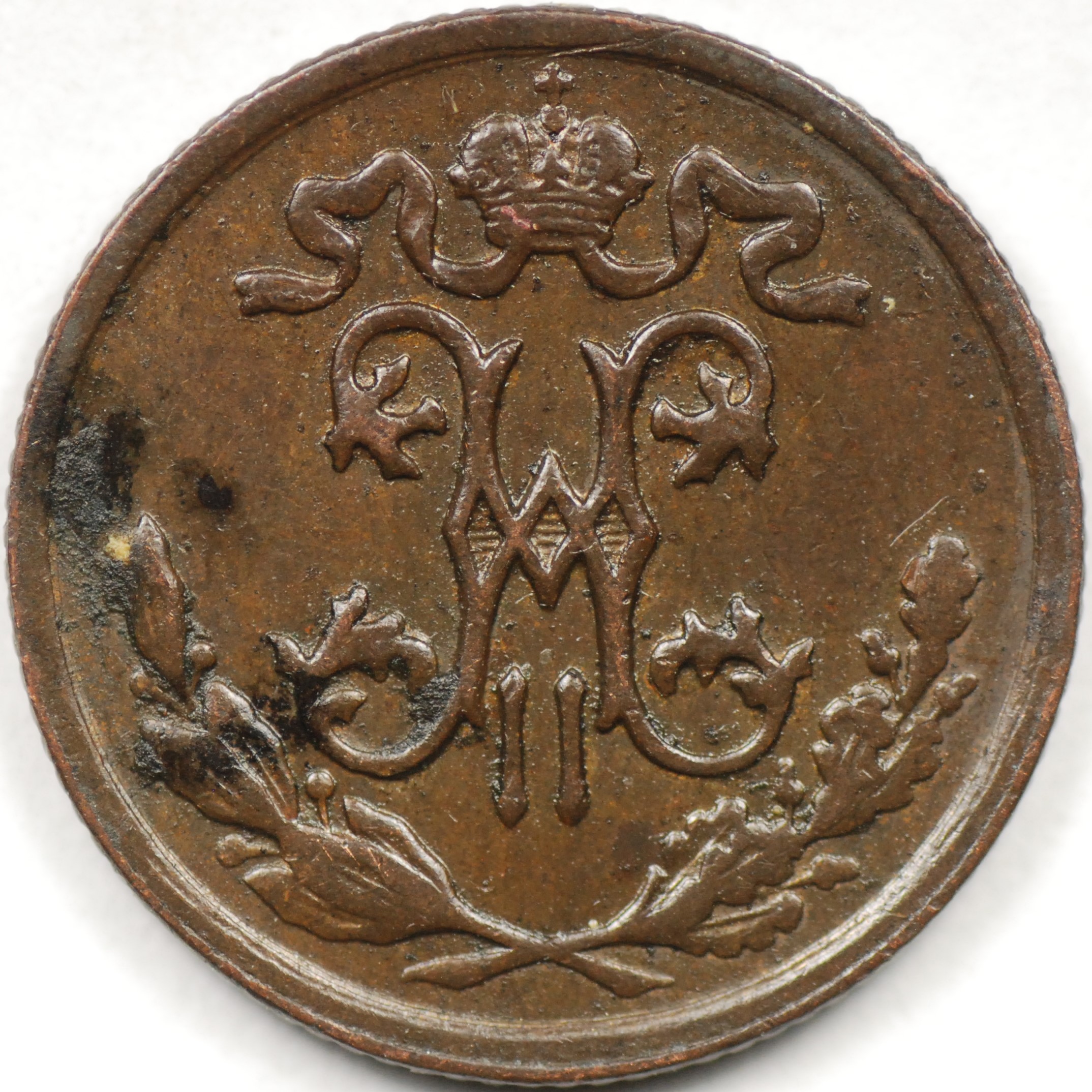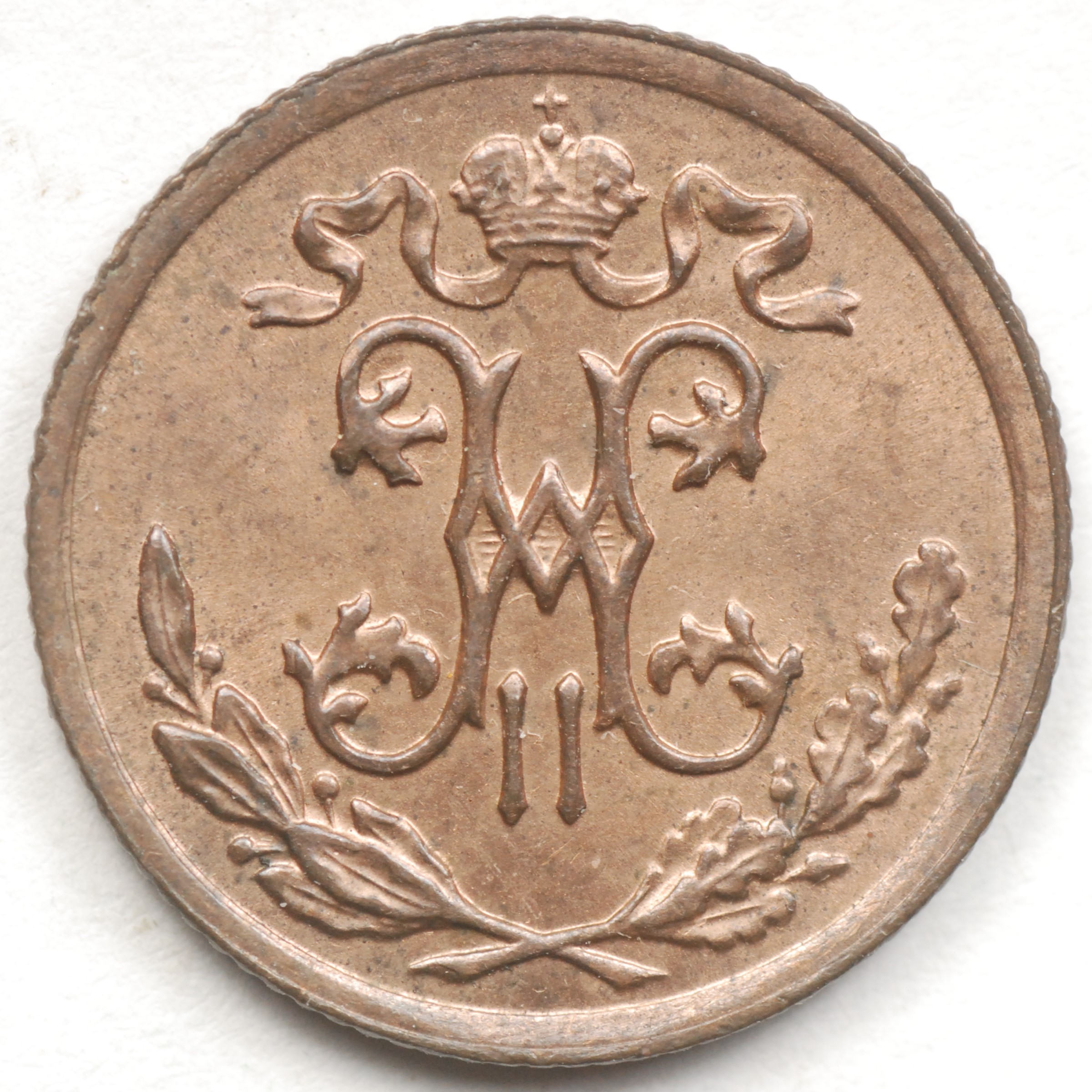 | FC | 31404 | 1897-CПБ | RUSSIA | 1/2 Kopek | Crowned Monogram | Nicholas II | Copper | 48.1 | Very Fine | $10.00 | |||||