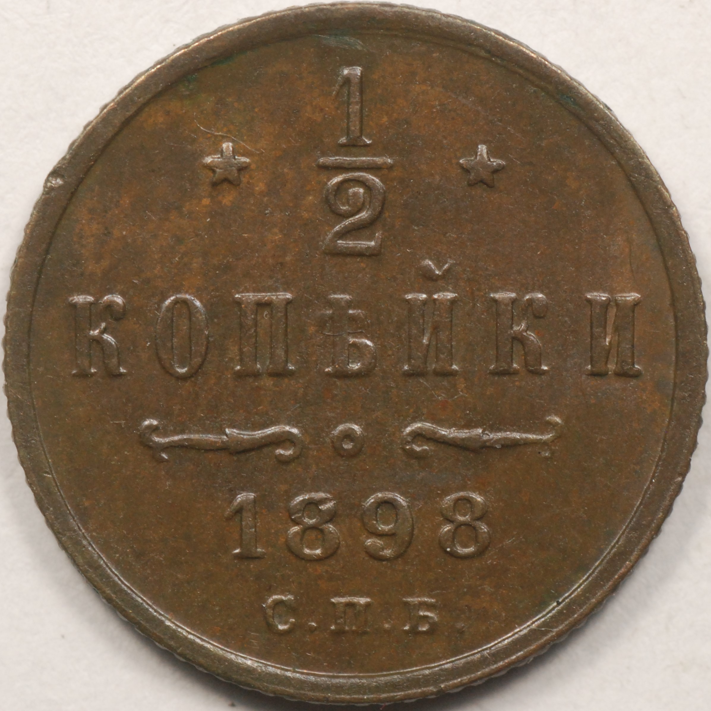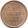 | FC | 31559 | 1898-CПБ | RUSSIA | 1/2 Kopek | Crowned Monogram | Nicholas II | Copper | 48.1 | Uncirculated | $12.00 | |||||