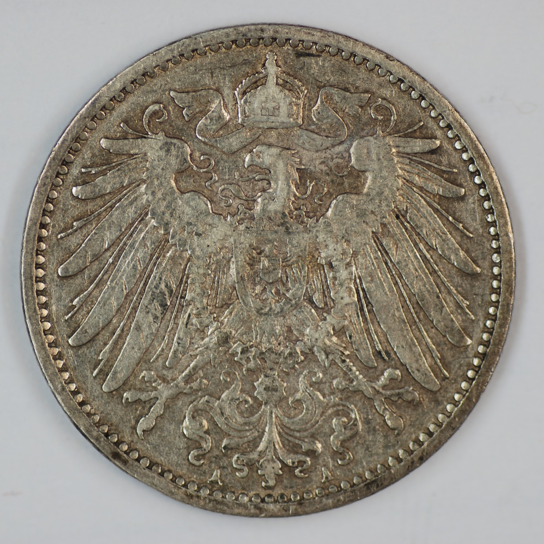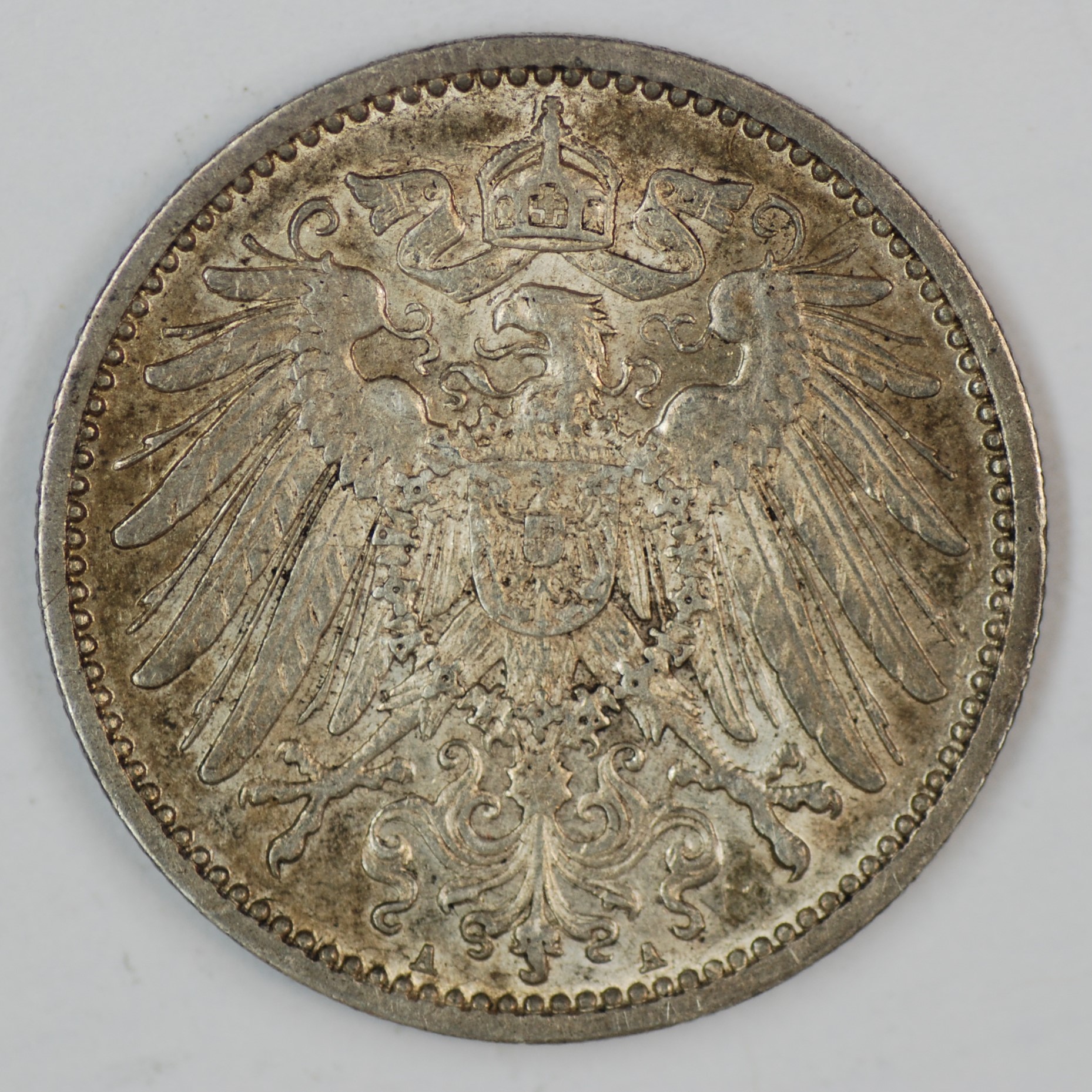 | FC | 24725 | 1914-A | GERMANY | 1 Mark | Crowned Imperial Eagle | Wilhelm I | 0.900 | 0.1606 | Silver | 14 | About Uncirculated | $15.00 | |||