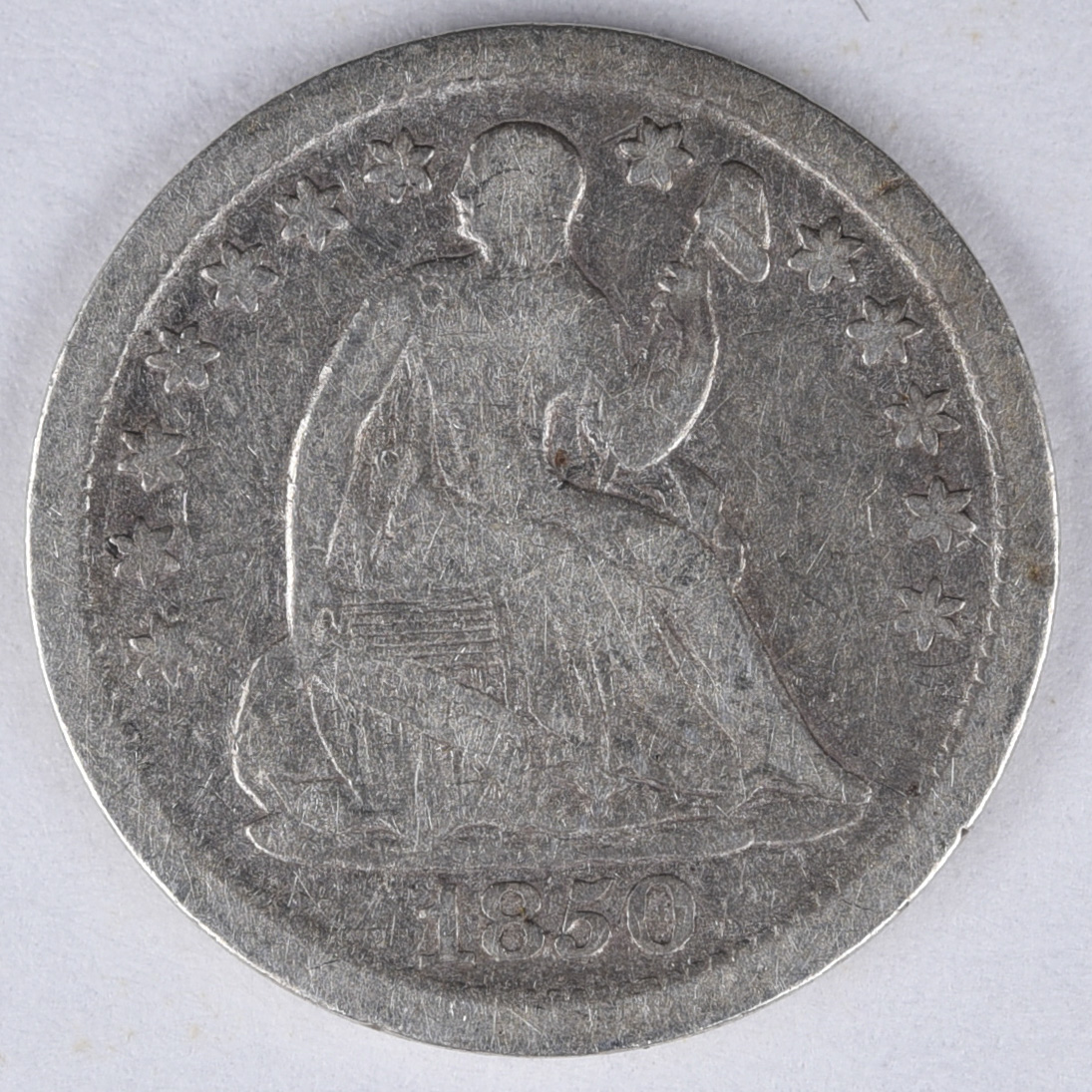 | 194 R | 1850 | Seated Liberty Half Dime | Drapery | Fine | $23.00 | ||