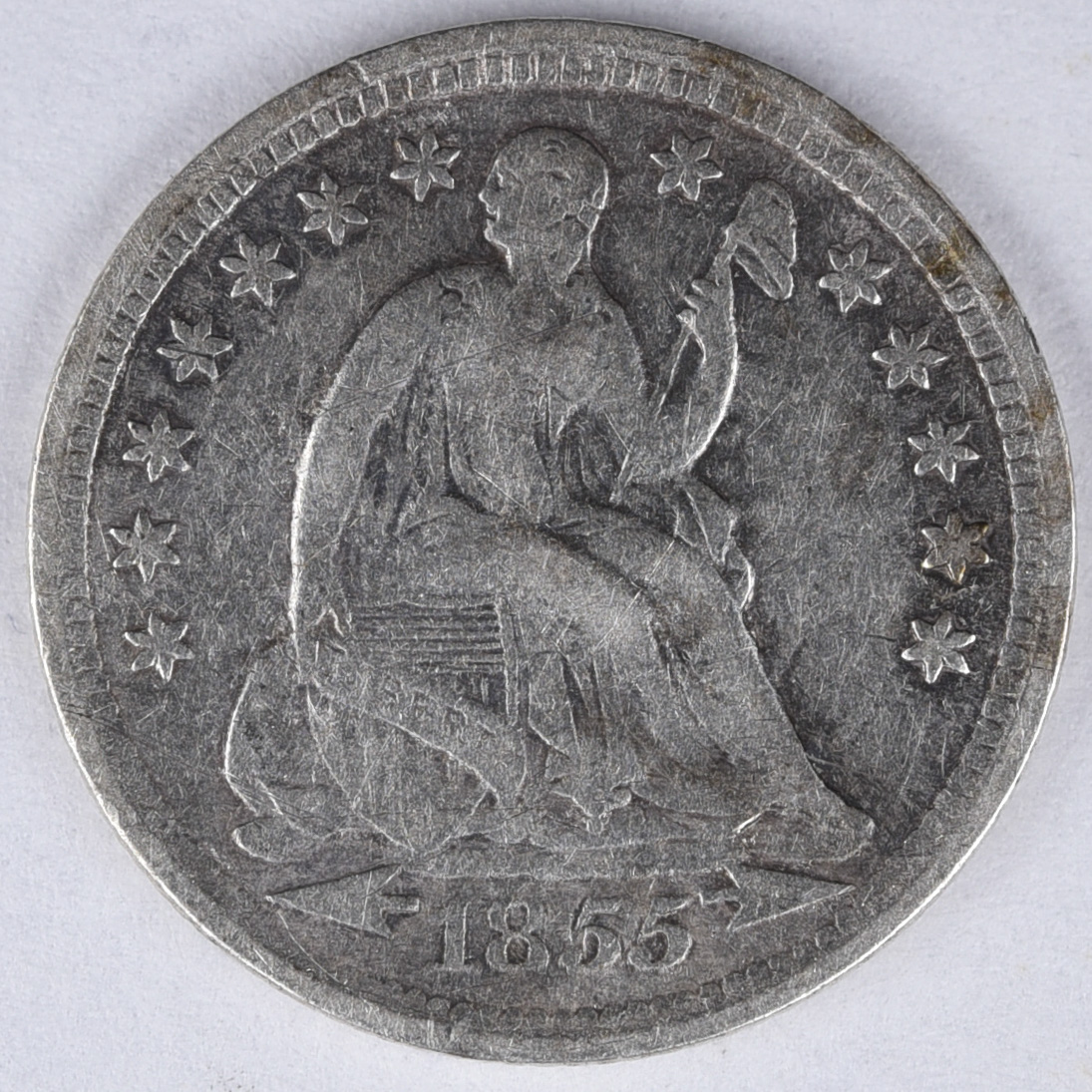 | 90619 R | 1857 | Seated Liberty Half Dime | Scratches | Very Good | $30.00 | ||