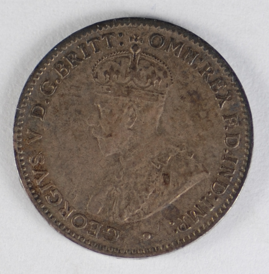 | FC | 346 | 1919-M | AUSTRALIA | 3 Pence | Arms | George V | 0.925 | 0.0393 | Silver | 24 | 3 | Fine | $2.25 | ||