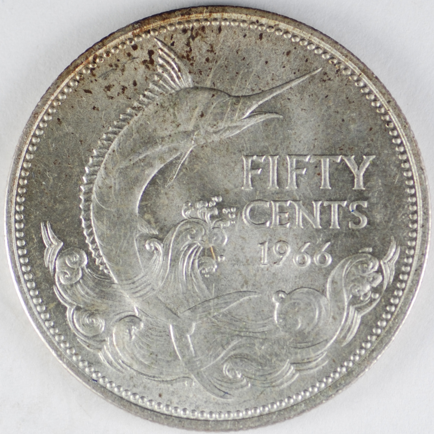 | FC | 29515 | 1966 | BAHAMAS | 50 Cents | Blue Marlin Fish | Elizabeth II | 0.800 | 0.2667 | Silver | 7 | 10 | Uncirculated | $12.00 | ||