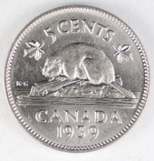 | FC | 9004 | 1940 | CANADA | 5 Cents | Beaver | George VI | Nickel | Extremely Fine | $2.25 | |||||