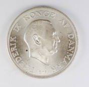 FC | 17613 | 1958 | DENMARK | 2 Kroner | Frederik IX | Princess Margareth's 18th Birthday | 0.800 | 0.3858 | Silver | 844 | Bril. Uncirculated | $50.00 |