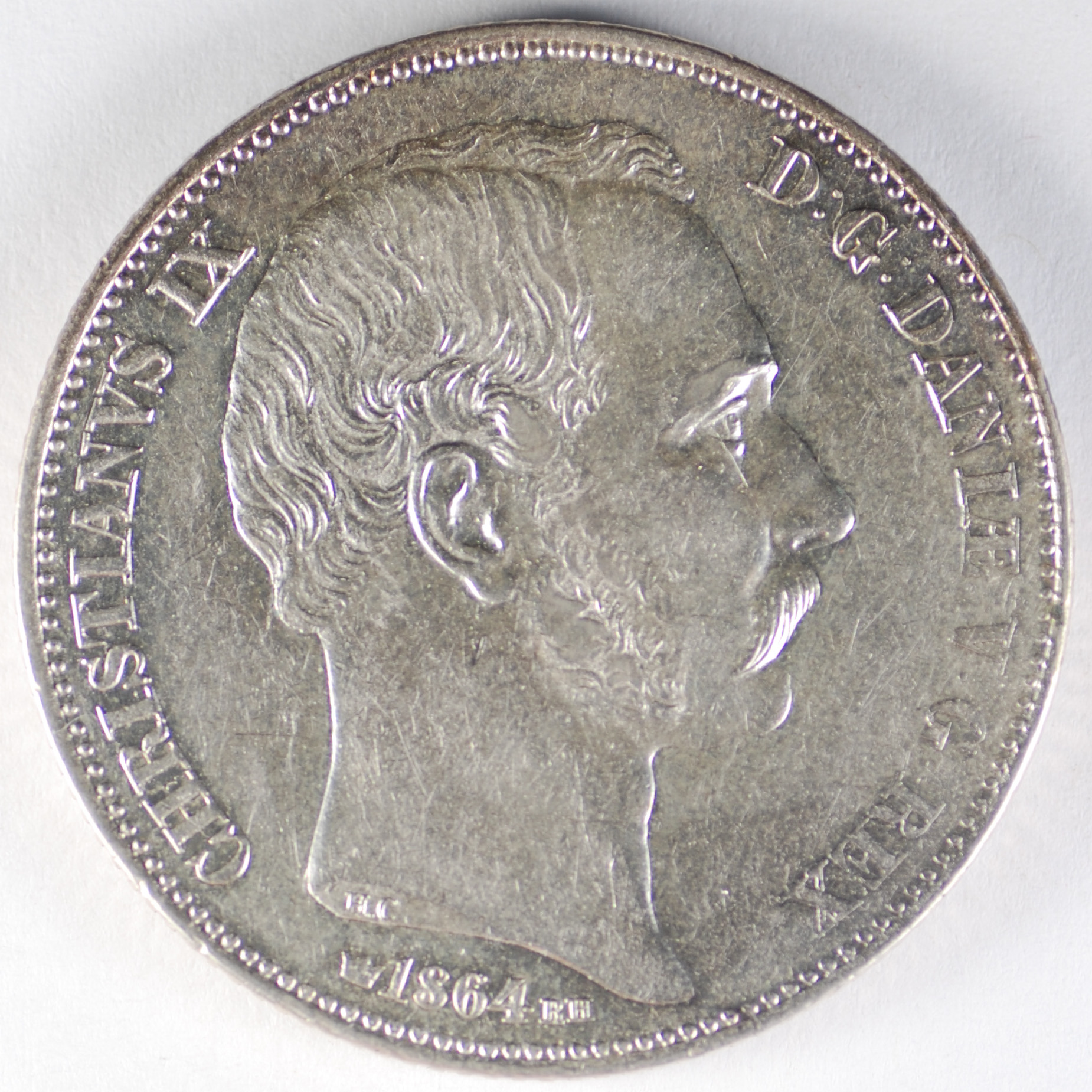 FC | 17599 S | 1864-HC/RH | DENMARK | 2 Rigsdaler | Christian IX | 0.875 | 0.8128 | Silver | 772.1 | Extremely Fine | $1,000.00 | |