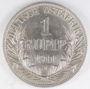 | FC | 27021 | 1911-A | GERMAN EAST AFRICA | 1 Rupie | Wilhelm II | Value and Date within Wreath | 0.917 | 0.3439 | Silver | 10 | Extremely Fine | $75.00 | ||