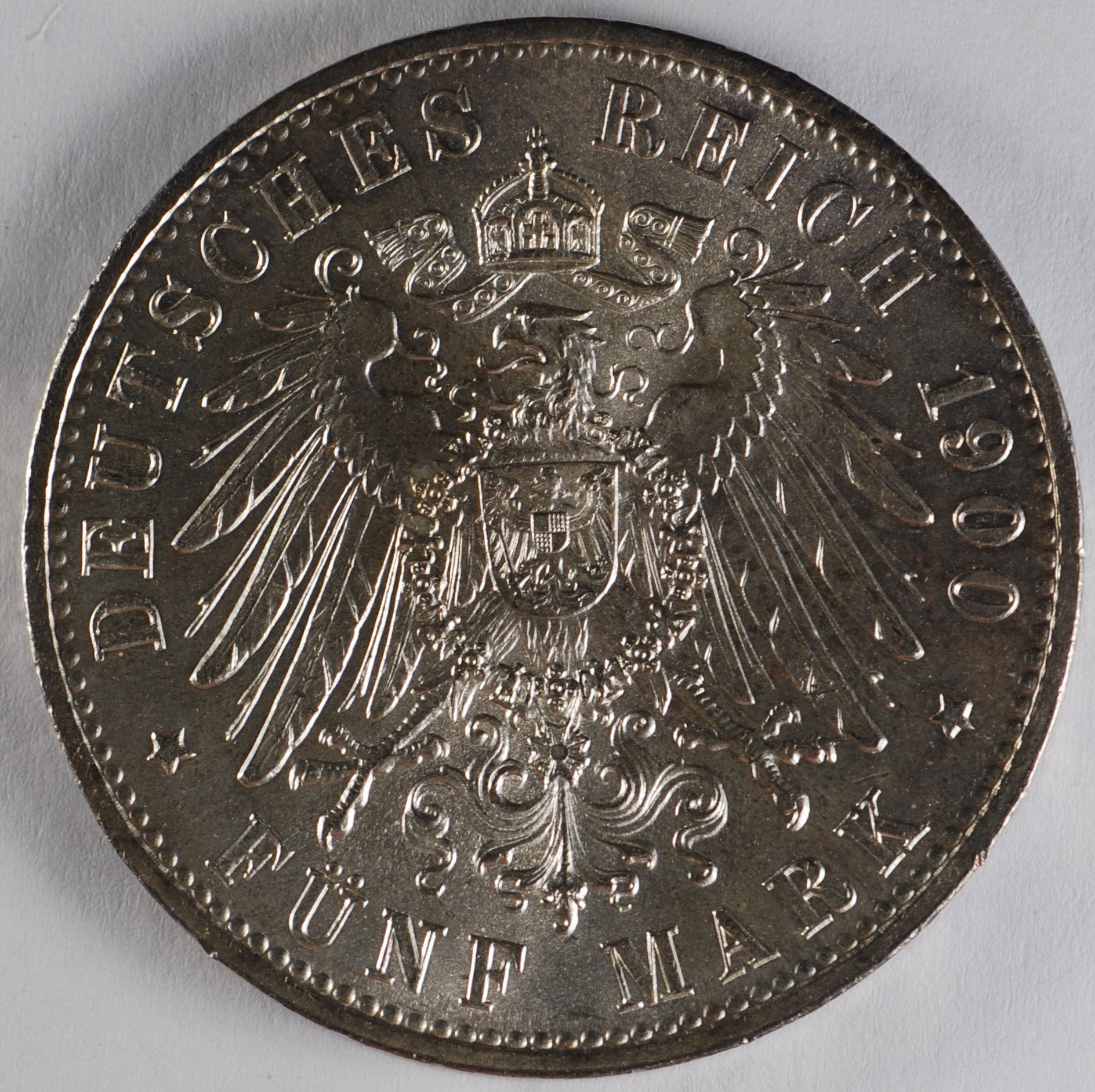 FC | 39283 S | 1900-J | GERMAN STATES - HAMBURG | 5 Mark | Helmeted Arms, Lions | Crowned Imperial Eagle | 0.900 | 0.8037 | Silver | 610 | MS-63 | $600.00 |