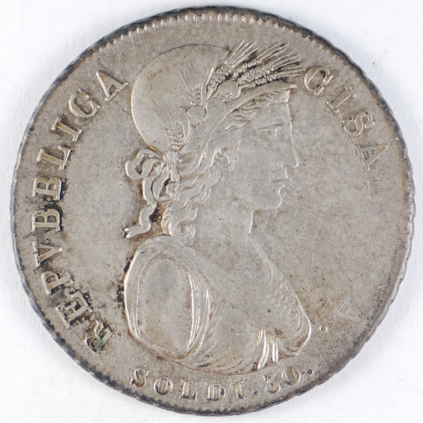 FC | 22140 S | 1801 | ITALY - Cisalpine Republic | 30 Soldi | 5 Line Inscription | 0.680 | 0.1612 | Silver | 1 | Choice Extremely Fine | $380.00 | |