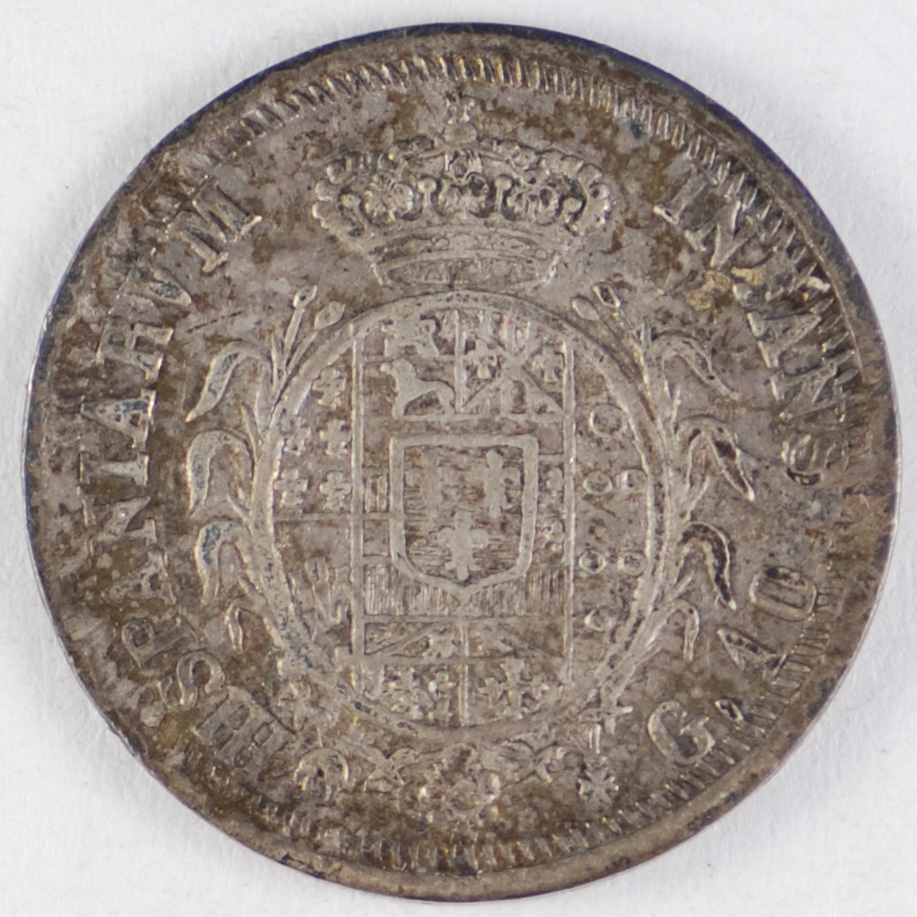 | FC | 25288 S | 1836 | ITALY - SARDINIA | 5 Lire | Crowned Shield | Carlo Alberto | 0.900 | 0.7234 | Silver | 130.2 | Choice Very Fine | $275.00 | ||