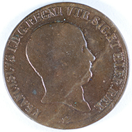 | FC | 22509 | 1800 | ITALY - Naples | 6 Tornesi | Ferdinando IV | Head to Right | Copper | 229 | Very Fine | $100.00 | ||||