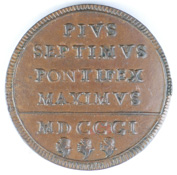 | FC | 37199 | 1800-1823 | ITALY - PAPAL STATES | Bronze Medal | Pope Pius Septimus | "Uniface" Shell | Bronze | Extremely Fine | $145.00 | |||||