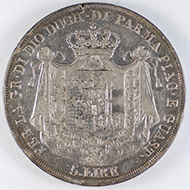 FC | 22137 S | 1815 | ITALY - Parma | 5 Lire | Maria Luigia | 0.90 | 0.7234 | Silver | Very Fine | $300.00 | ||