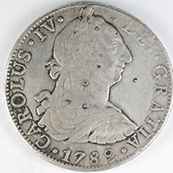 | FC | 25289 S | 1789-MoFM | MEXICO | 8 Reales | Charles IV | 0.903 | 0.7858 | Silver | 107 | Very Fine | $160.00 | |||