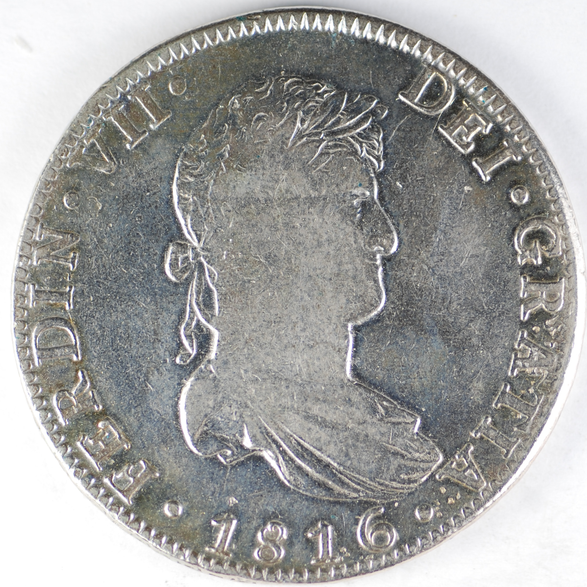 FC | 39292 | 1816-MoJJ | MEXICO | 8 Reales | Crowned Shield | Ferdinand VII | 0.903 | 0.7859 | Silver | 111 | Very Fine, Cleaned | $50.00 |