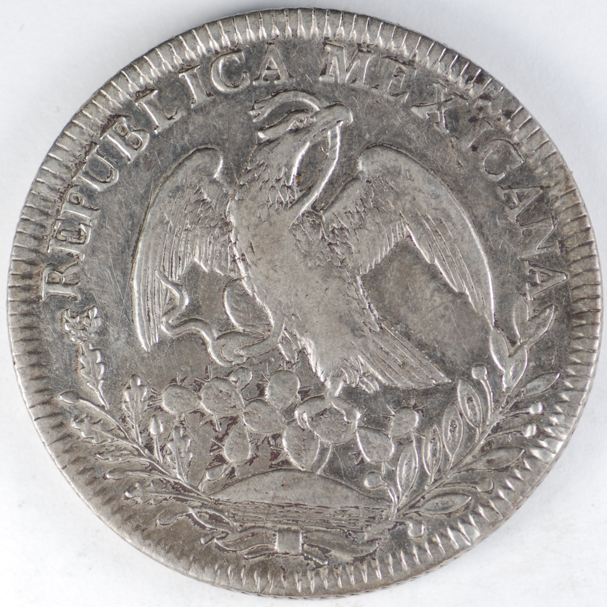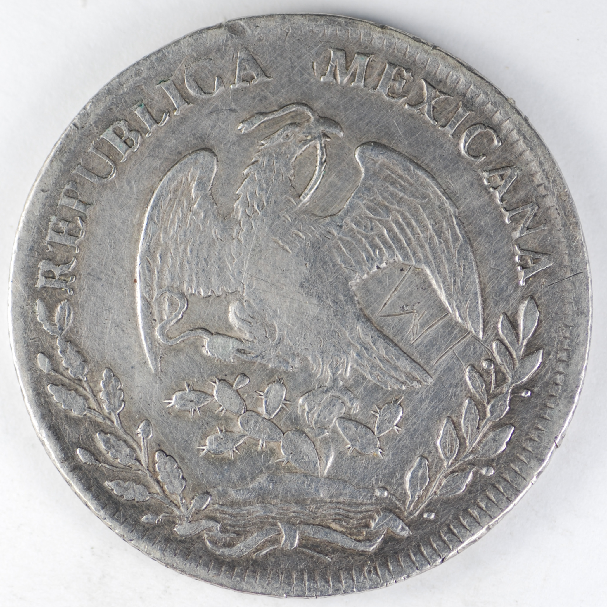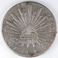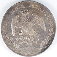 | FC | 33089 | 1893-GaJS | MEXICO | 8 Reales | Facing Eagle, Snake | Radiant Cap | 0.90 | 0.7859 | Silver | 377.6 | Extremely Fine | |||