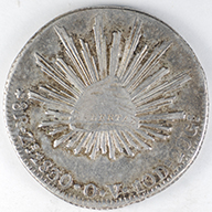 | FC | 33085 | 1838-ZsOM | MEXICO | 8 Reales | Facing Eagle, Snake | Radiant Cap | 0.90 | 0.7859 | Silver | 377.13 | Choice Very Fine | $50.00 | ||