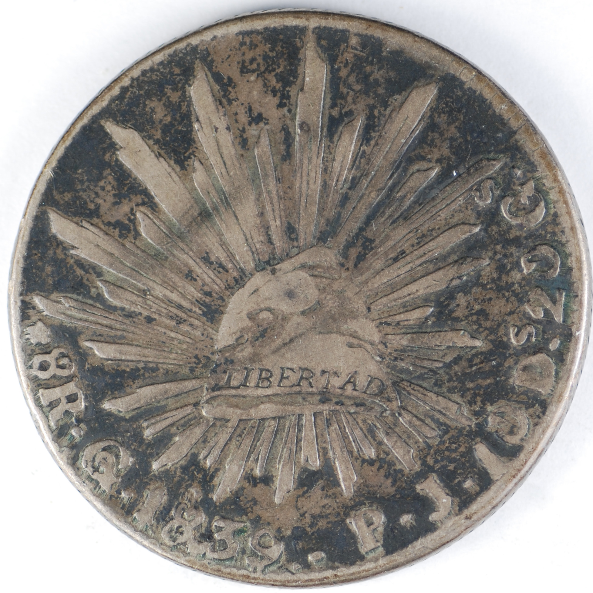 FC | 39238 | 1839-GoPJ | MEXICO | 8 Reales | Facing Eagle with Snake | Radiant Cap | 0.903 | 0.7859 | Silver | 377.8 | Very Fine | $60.00 |