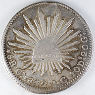 | FC | 33088 | 1856-ZsOM | MEXICO | 8 Reales | Facing Eagle, Snake | Radiant Cap | 0.90 | 0.7859 | Silver | 377.13 | Fine | $32.00 | ||