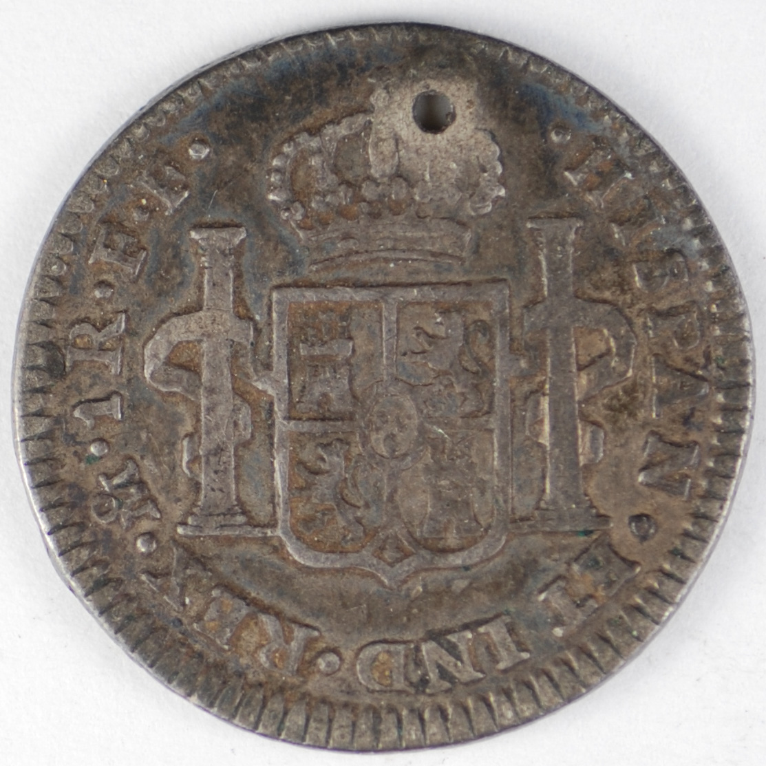 | FC | 25474 | 1792-MoFF | MEXICO | 1 Real | Crowned Globes | Charles III | 0.903 | 0.0981 | Silver | 78.2 | Holed Very Fine | $25.00 | |||