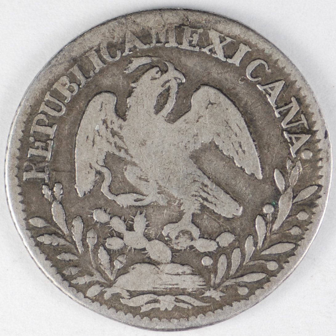 FC | 39234 | 1838-ZsOM | MEXICO | 1 Real | Facing Eagle, Snake in Beak | Radiant Cap | 0.903 | 0.0981 | Silver | 372.1 | Fine | $15.00 | |