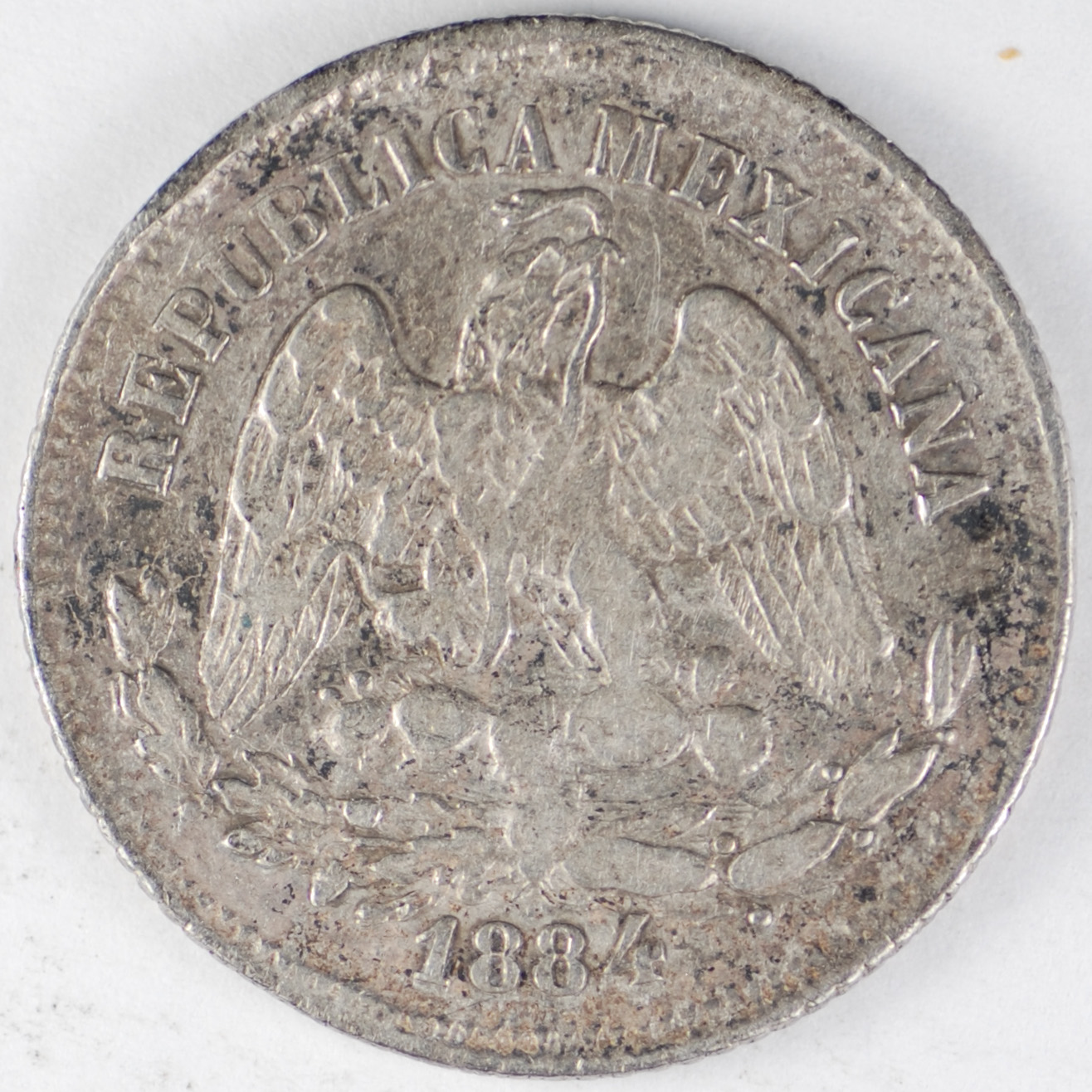 | FC | 37234 | 1885 ZsS | MEXICO | 25 Centavos | Facing Eagle | Snake in Beak Value within Wreath | 0.903 | 0.01965 | Silver | 406.9 | Very Fine | $15.00 | ||