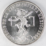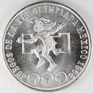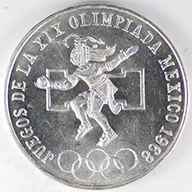 FC | 39225 | 1968-Mo | MEXICO | 25 Pesos | Olympics Dancer | 0.720 | 0.5208 | Silver | 479.1 | Bril. Uncirculated | $28.00 | |