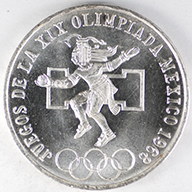 | FC | 39083 | 1968-Mo | MEXICO | 25 Pesos | Olympics Dancer | 0.720 | 0.5208 | Silver | 479.1 | Uncirculated | $26.00 | |||