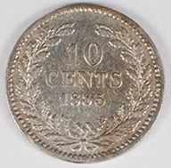 | FC | 9835 | 1856 | NETHERLANDS | 10 Cents | William III | 0.640 | 0.0288 | Silver | 80 | Good | $10.00 | |||