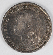 | FC | 4503 | 1887 | NETHERLANDS | 10 Cents | William III | 0.640 | 0.0288 | Silver | 80 | Fine | $12.50 | |||