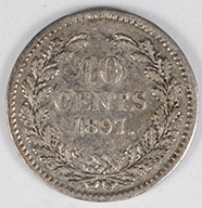 | FC | 50229 | 1897 | NETHERLANDS | 10 Cents | Wilhelmina I | 0.640 | 0.0736 | Silver | 115 | Very Good | $5.00 | |||