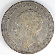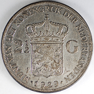 FC | 39713 | 1929 | NETHERLANDS | 2-1/2 Gulden | Wilhelmina I | Crowned Arms divides value | 0.720 | 0.5787 | Silver | 165 | Extremely Fine | $35.00 |