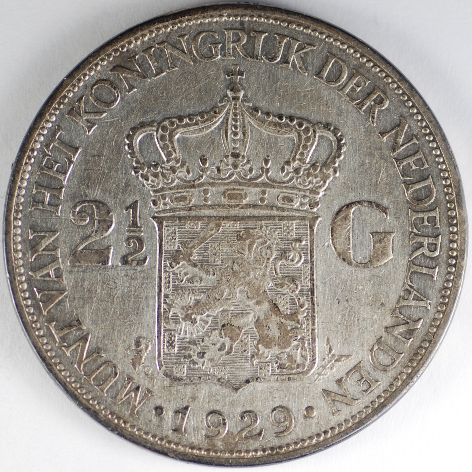 | FC | 25016 | 1929 | NETHERLANDS | 2-1/2 Gulden | Wilhelmina I | Crowned Arms | 0.720 | 0.5787 | Silver | 165 | Extremely Fine | $35.00 | ||