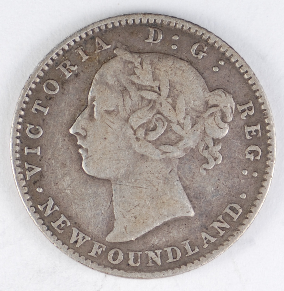 | FC | 22565 S | 1880 | NEWFOUNDLAND | 5 Cents | Victoria | 0.925 | 0.0350 | Silver | 2 | Very Fine | $150.00 | |||