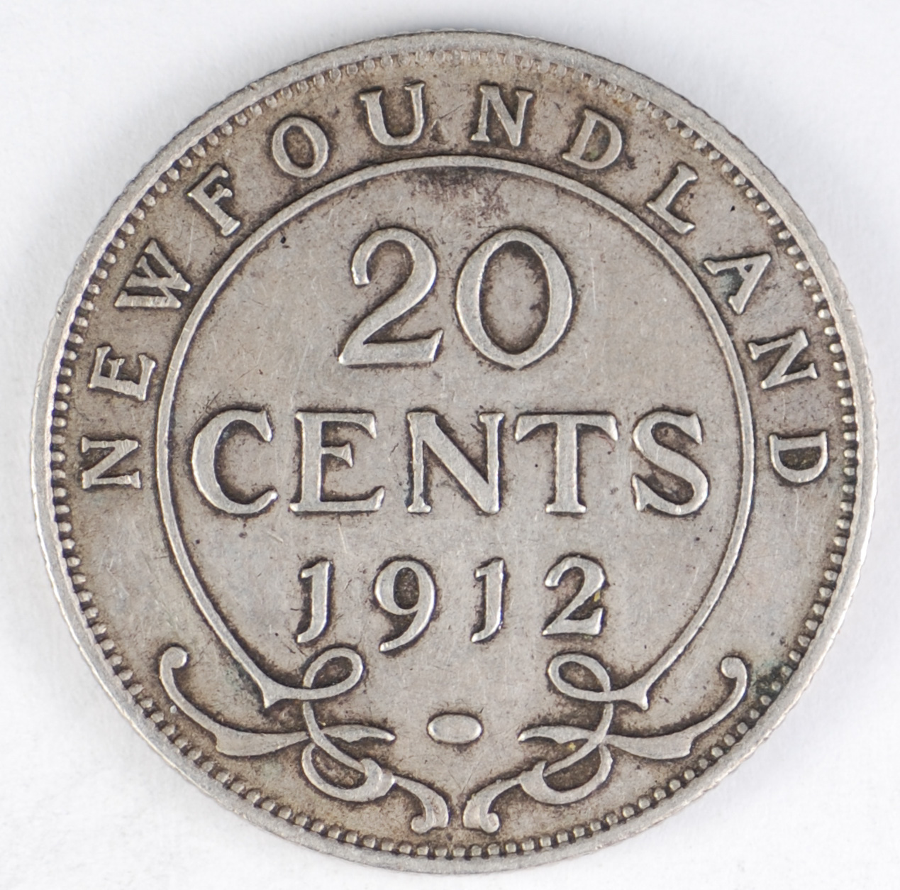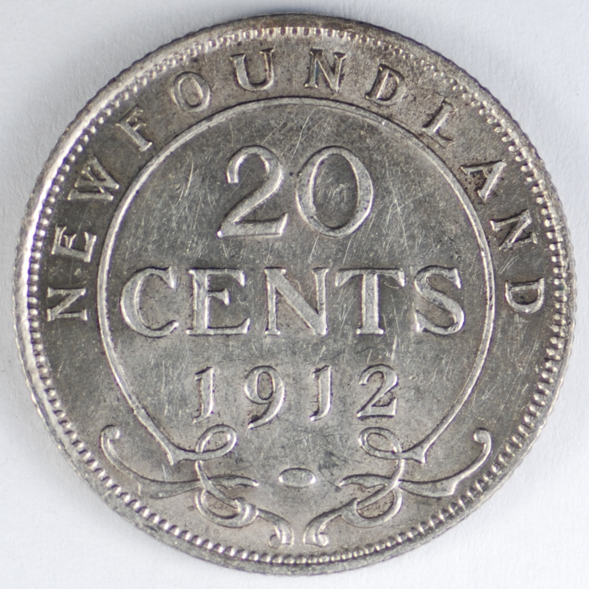 FC | 39589 | 1912 | NEWFOUNDLAND | 20 Cents | George V | Denomination and Date within Circle | 0.925 | 0.1402 | Silver | 15 | Extremely Fine | $65.00 |