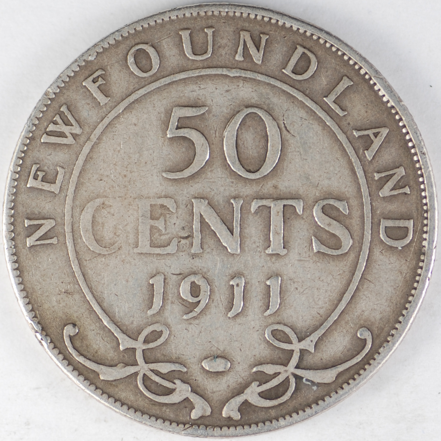 FC | 25132 | 1911 | NEWFOUNDLAND | 50 Cents | George V | Date and Value within Circle | 0.925 | 0.3504 | Silver | 11 | Extremely Fine | $35.00 |