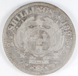 | FC | 35373 | 1896 | SOUTH AFRICA | 2-1/2 Shillings | Bust Left | Flagged Arms | 0.925 | 0.4204 | Silver | 7 | Very Fine | $25.00 | ||