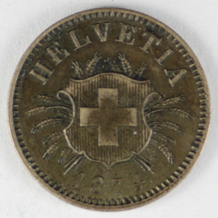| FC | 37212 | 1879-B | SWITZERLAND | 5 Rappen | Crowned Head Right | Value within Wreath | Copper-Nickel | 26 | Fine | $15.00 | ||||