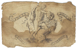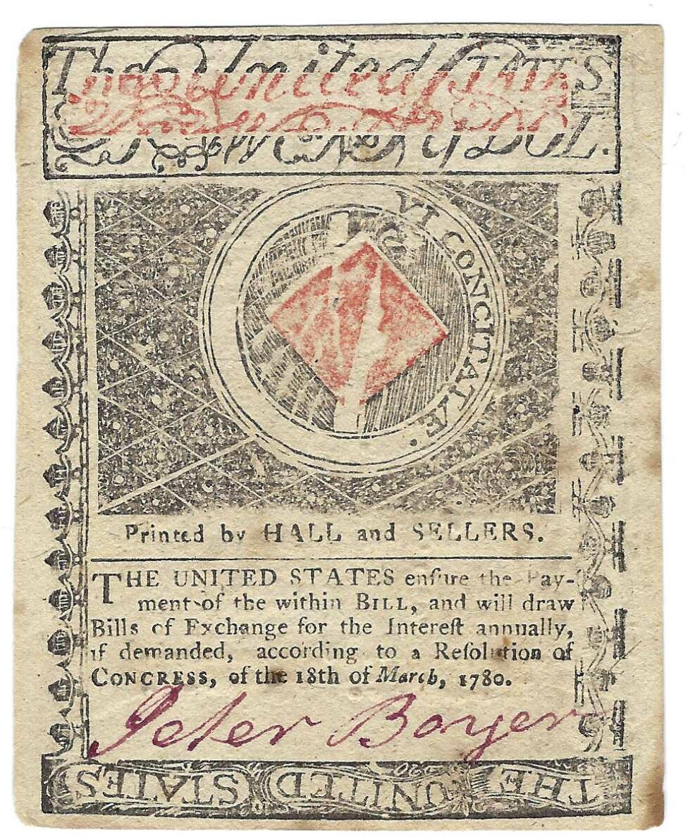 1780 | CC #97 | $60.00 | Colonial Currency | Virginia July 14, 1780, "Dill" instead of "Bill", very thin paper | 157- | $180.00 | |||||